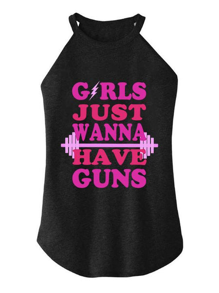 GIRLS JUST WANNA HAVE GUNS TRI ROCKER COTTON TANK