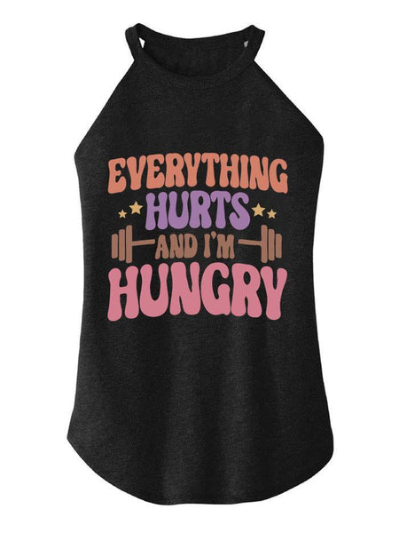 EVERYTHING HURTS AND I'M HUNGRY TRI ROCKER COTTON TANK
