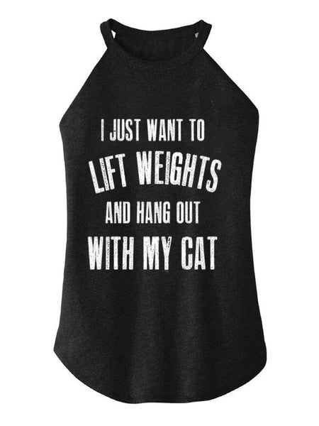 Lift Weights and Hang With My Cat TRI ROCKER COTTON TANK