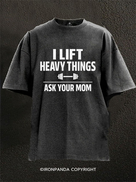 I LIFT HEAVY THINGS — ASK YOUR MOM Washed Gym Shirt