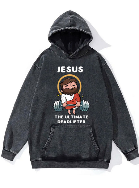 Jesus the ultimate Deadlifter Washed Gym Hoodie