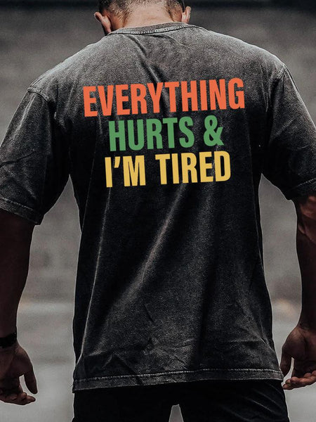 everything hurts and I'm tired back printed Washed Gym Shirt