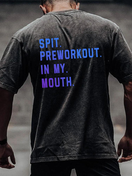 Spit Preworkout In My Mouth back printed Washed Gym Shirt