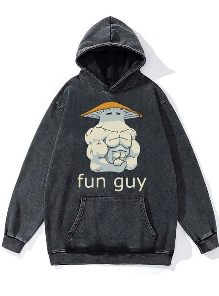 fun guy bodybuilder mushroom Washed Gym Hoodie