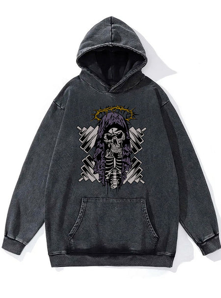 ENDEAVOR skeleton barbell Washed Gym Hoodie