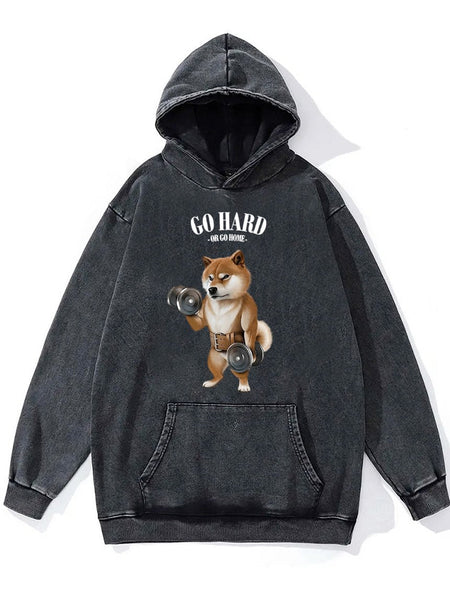 go hard or go home shiba dog Washed Gym Hoodie