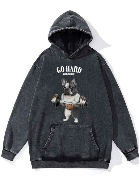 go hard or go home French Bull Dog Washed Gym Hoodie
