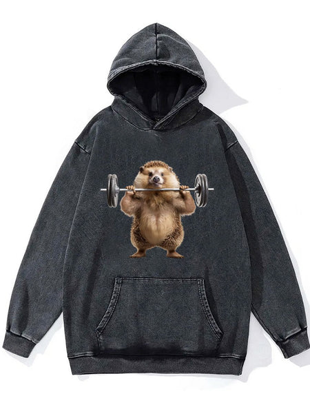 weightlifting hedgehog Washed Gym Hoodie
