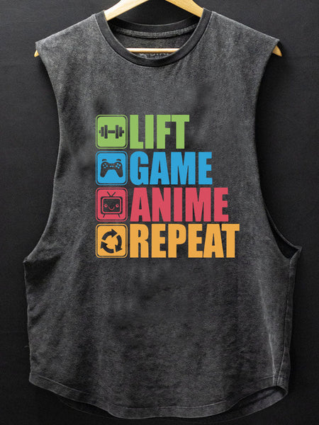 Lift, Game, Anime, Repeat SCOOP BOTTOM COTTON TANK