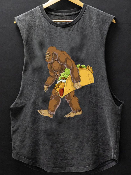 Bigfoot Sasquatch Carrying Taco SCOOP BOTTOM COTTON TANK