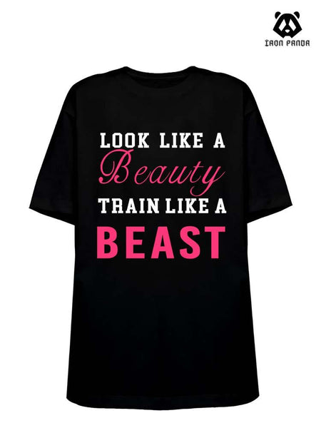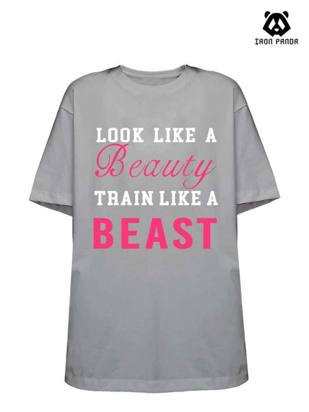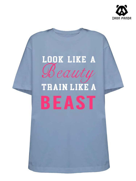 LOOK LIKE BEAUTY TRAIN LIKE A BEAST Loose fit cotton Gym T-shirt