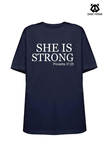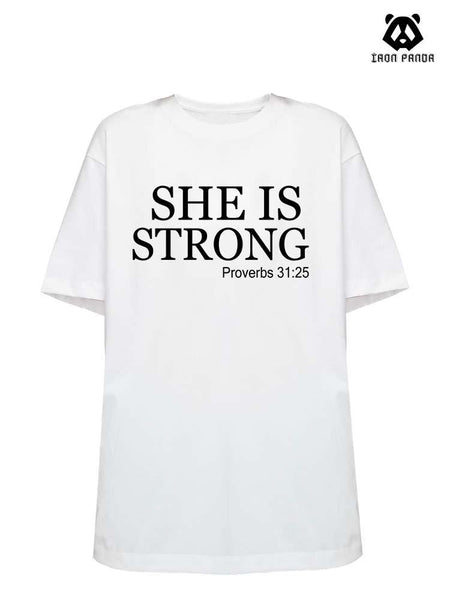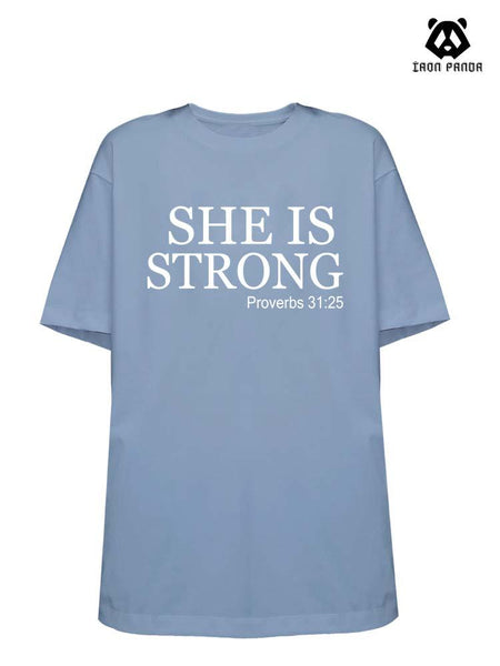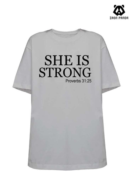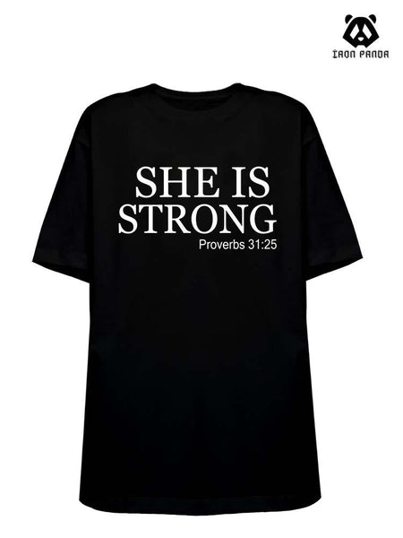 SHE IS STRONG Loose fit cotton Gym T-shirt