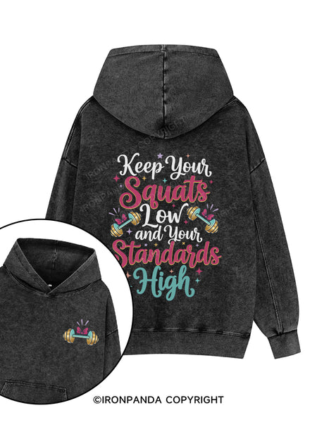 keep your squats low and your standards high Printed Washed Gym Hoodie