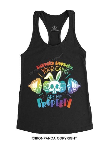 Hippity Hoppity, your gains are my property Gym Racerback Tank