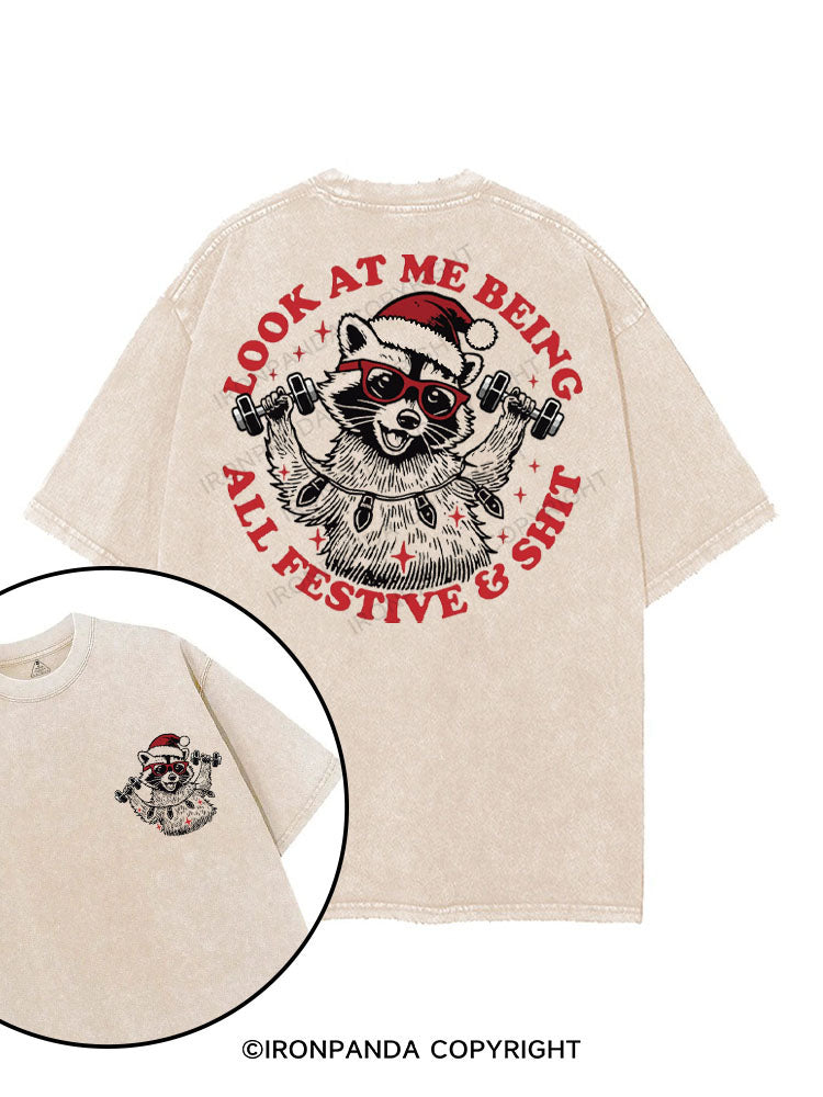 LOOK AT ME BEING ALL FESTIVE & SHIT printed Gym Shirt
