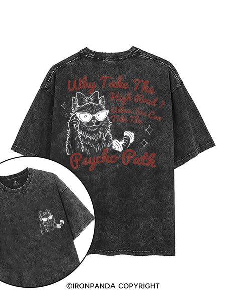 WHY TAKE THE HIGH ROAD WHEN YOU CAN TAKE THE PSYCHO PATH VINTAGE GYM SHIRT
