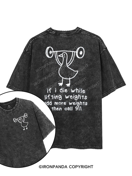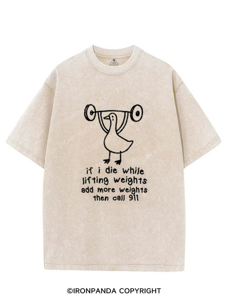 IF I DIE WHILE LIFTING WEIGHTS ADD MORE WEIGHTS THEN CALL 911 VINTAGE GYM SHIRT