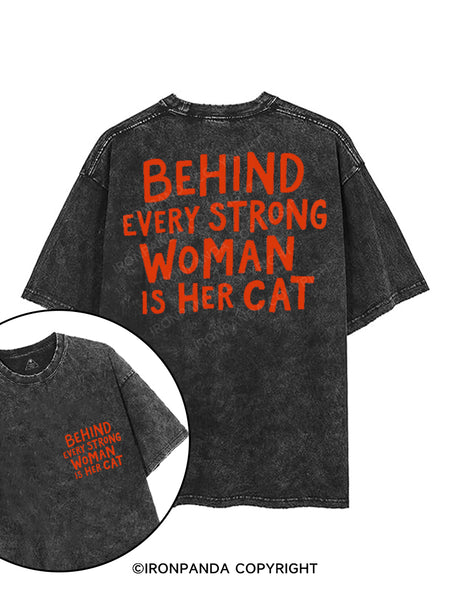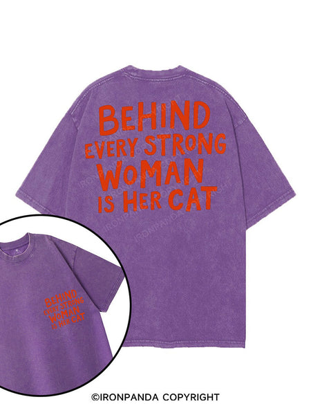 BEHIND EVERY STRONG WOMAN IS HER CAT printed Gym Shirt