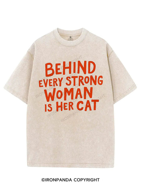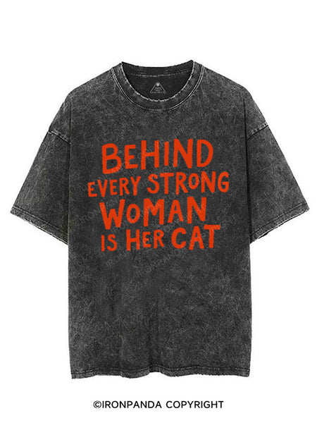 BEHIND EVERY STRONG WOMAN IS HER CAT VINTAGE GYM SHIRT
