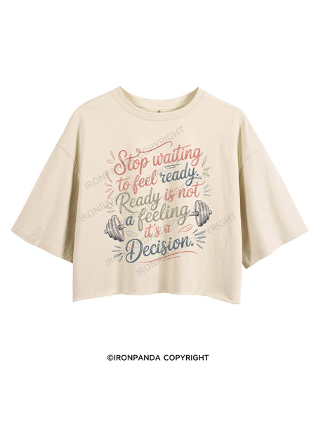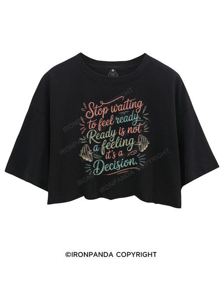 STOP WAITING TO FEEL READY, READY IS NOT A FEELING IT'S A DECISION CROP TOPS