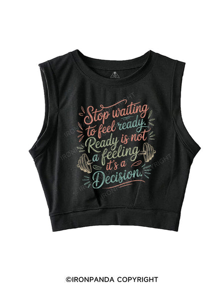 STOP WAITING TO FEEL READY, READY IS NOT A FEELING IT'S A DECISION SLEEVELESS CROP TOPS