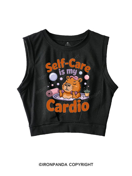 SELF-CARE IS MY CARDIO SLEEVELESS CROP TOPS