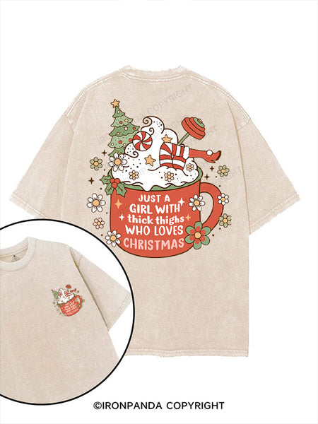 Just a Girl with Thick Thighs Who Loves Christmas printed Gym Shirt