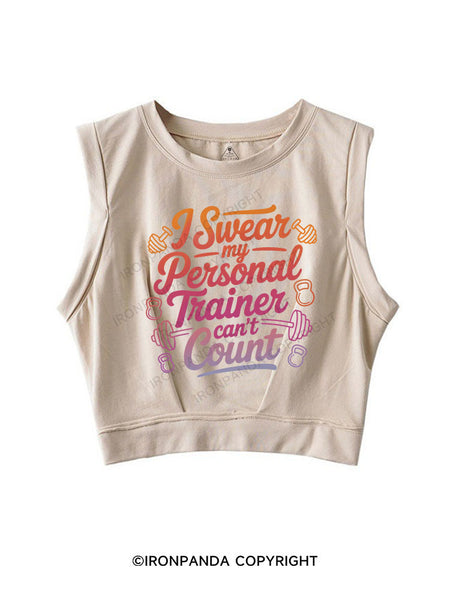 I SWEAR MY PERSONAL TRAINER CAN'T COUNT SLEEVELESS CROP TOPS