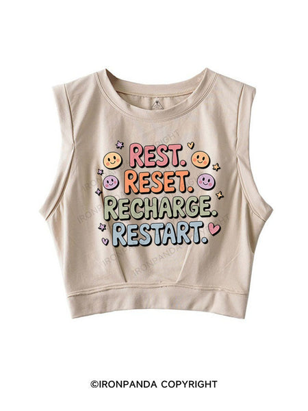 REST RESET RECHARGE RESTART SLEEVELESS CROP TOPS
