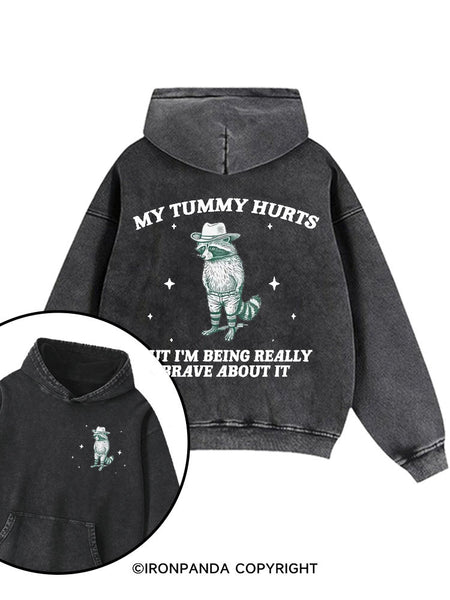 My Tummy Hurts But I'm Being Really Brave About It Washed Gym Hoodie
