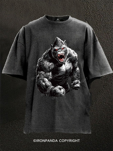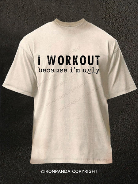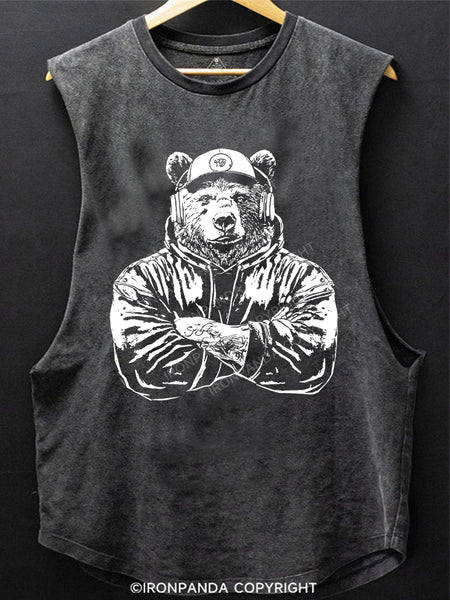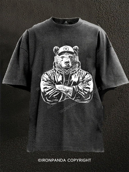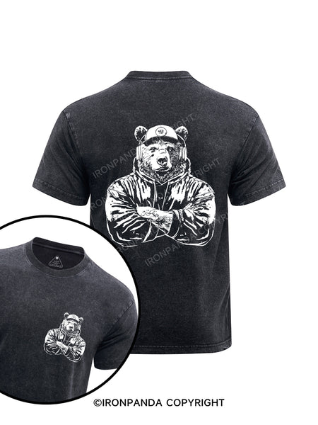 I'M NOT HERE TO TALK bear printed Washed Gym Shirt