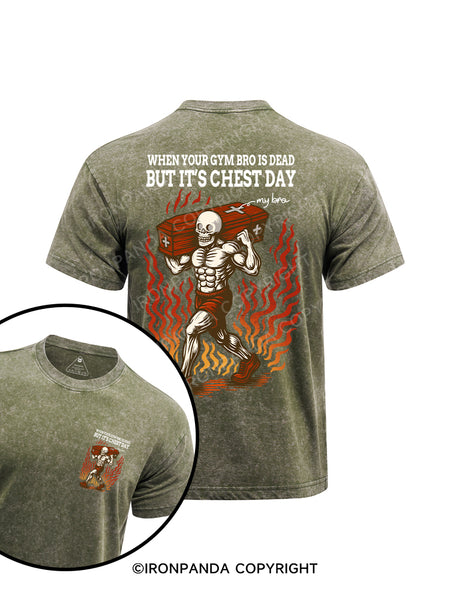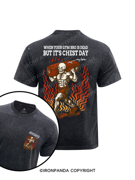 WHEN YOUR GYM BRO IS DEAD BUT IT'S CHEST DAY printed Washed Gym Shirt