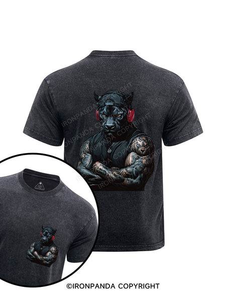 Black Panther with headphones printed Washed Gym Shirt