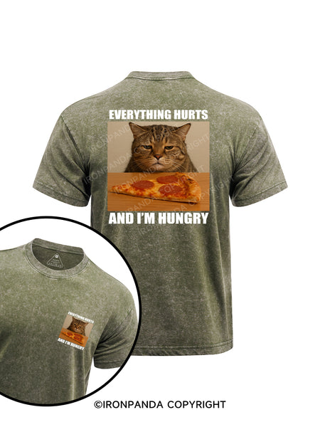EVERYTHING HURTS AND I'M HUNGRY printed Washed Gym Shirt