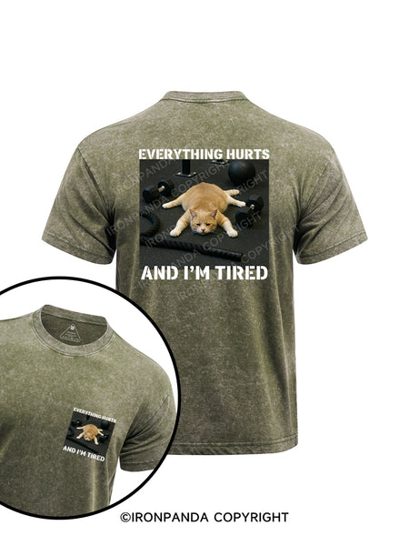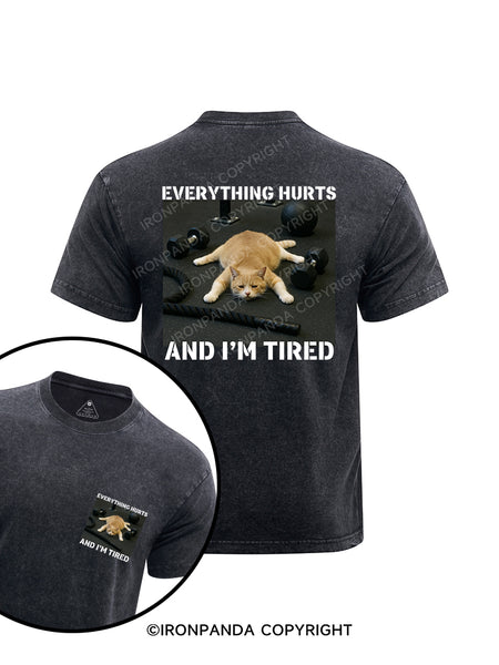 EVERYTHING HURTS AND I'M TIRED printed Washed Gym Shirt