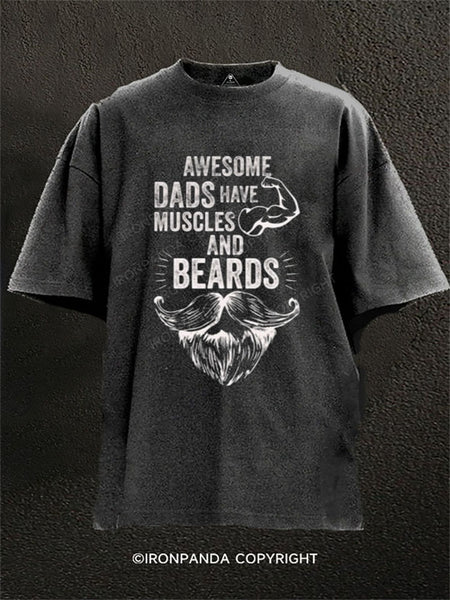 Awesome Dads Have Muscles and Beards Washed Gym Shirt