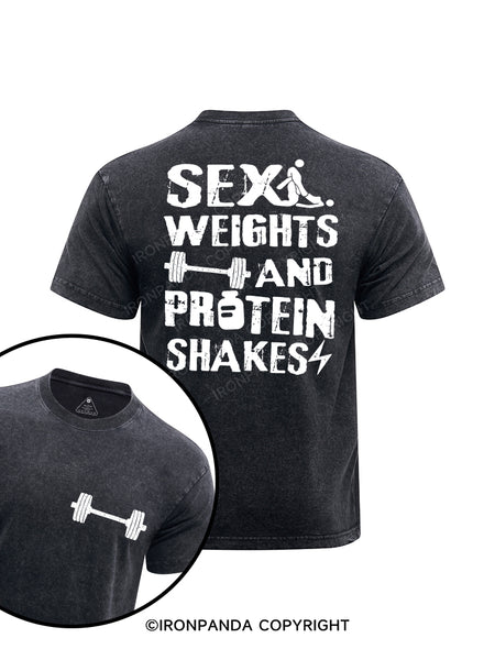 SEX WEIGHTS & PROTEIN SHAKES printed Washed Gym Shirt