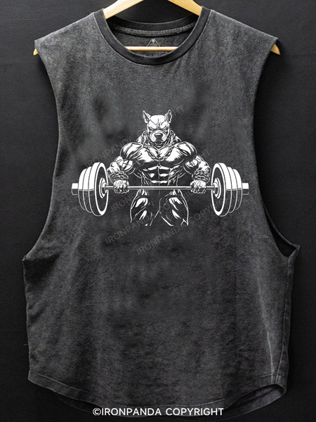 MUSCULAR BULLDOG WITH HEADPHONES Washed Gym Shirt