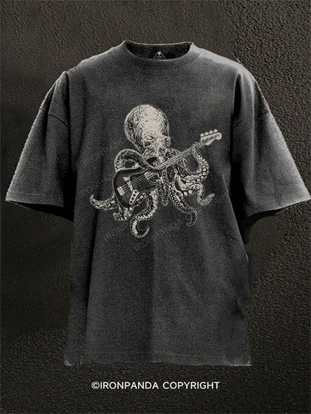 octopus Playing Guitar Washed Gym Shirt