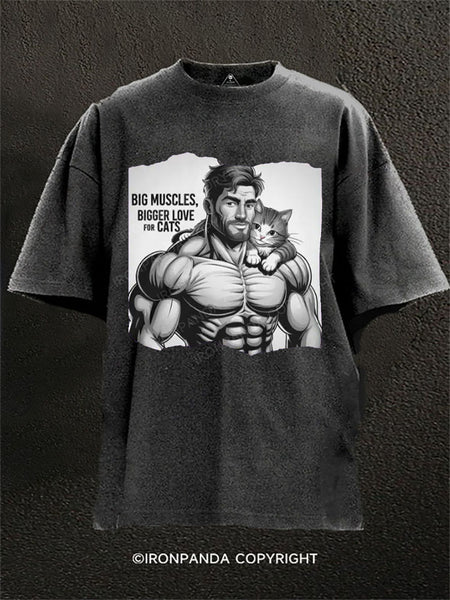 Big muscles, bigger love for cats Washed Gym Shirt