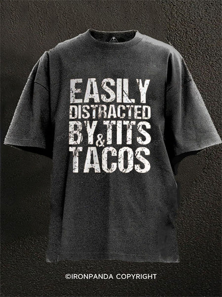 Easily distracted by tits & tacos Washed Gym Shirt