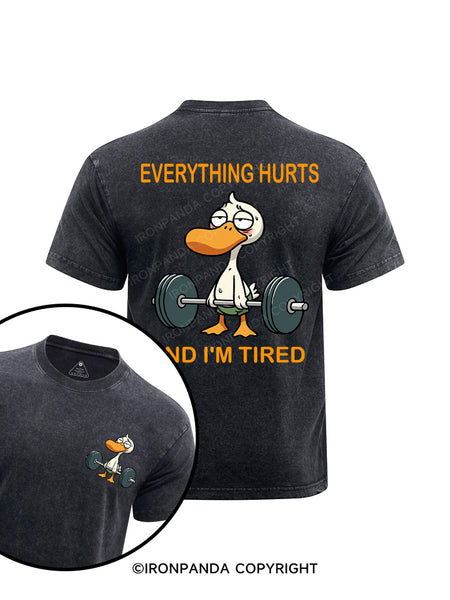 EVERYTHING HURTS AND I'M TIRED DUCK printed Washed Gym Shirt