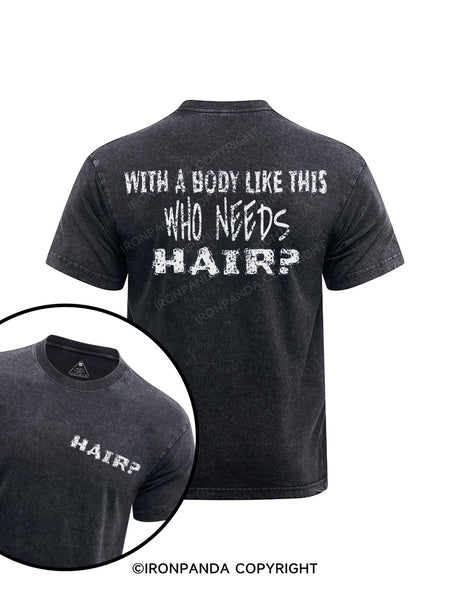 With a Body Like This Who Needs Hair printed Washed Gym Shirt
