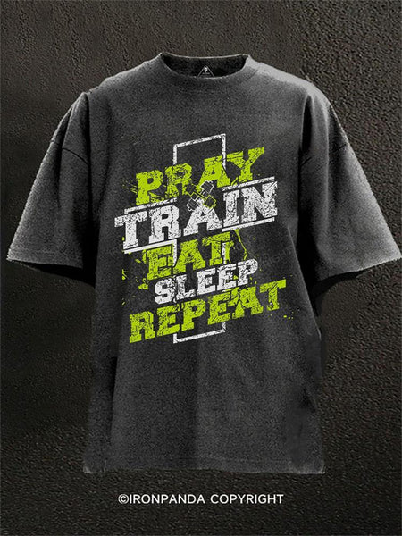 Pray, Train, Eat, Sleep, Repeat Washed Gym Shirt