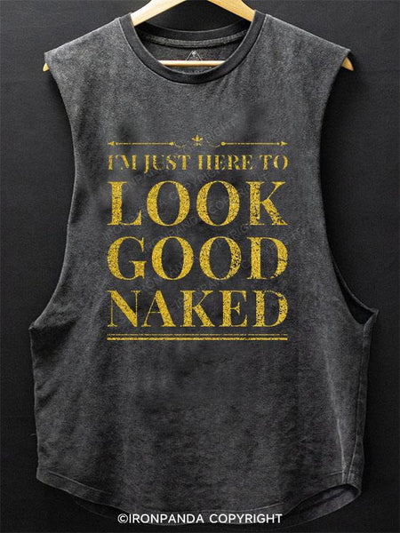 I'M JUST HERE TO LOOK GOOD NAKED SCOOP BOTTOM COTTON TANK