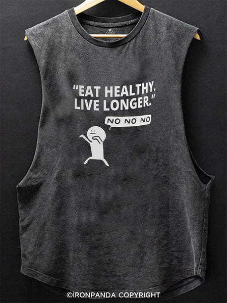 EAT HEALTHY LIVE LONGER. NO NO NO Scoop Bottom Cotton Tank