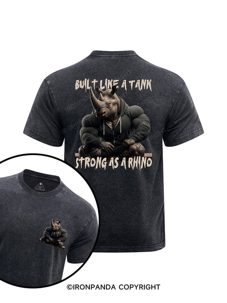 Built Like a Tank Strong as a Rhino printed Washed Gym Shirt