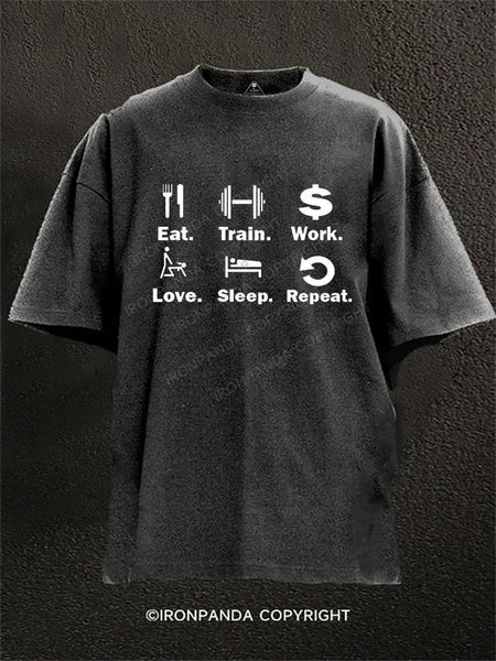 Eat Train Work Love Sleep Repeat Washed Gym Shirt