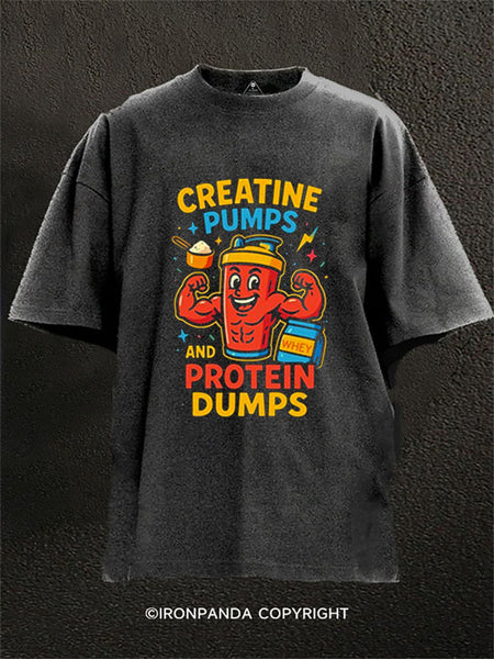 CREATINE PUMPS AND PROTEIN DUMPS Washed Gym Shirt