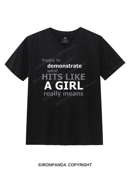 Happy to demonstrate what hits like a Girl Really Means Gym V-neck Shirt
